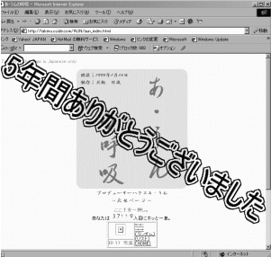 5年間と言う長くて短い間でしたが、アクセス数も37000を超え、多くの方にご覧いただけたことをとても嬉しく思います。 |